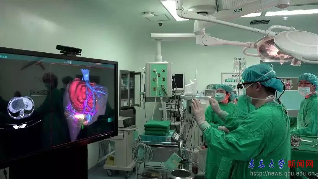 经过两年多研发,海信计算机辅助手术系统(Hisense Computer Assisted Surgery,下称海信CAS)与海信外科智能显示系统(Hisense Surgical Intelligent Display system,下称海信SID)两款产品相继问世。将近千张原始CT片中的数据输入系统,海信CAS会自动建立虚拟立体的数字肝脏。自此,不用开膛破肚,医生便可三维观察分析病变与血管、脏器的关系,精确计算脏器、病变的体积,还可实施虚拟手术切除,确定最佳手术切除线,从而最大限度保留正常肝组织,减少手术出血量,降低术后患者肝功能衰竭的风险。海信SID是术中手势控制导航系统。这款产品通过智能识别,可在手术中根据医生手势指挥,三维立体展现数字肝脏的不同侧面和不同角度,既方便医生迅速判断手术操作路径,又保证操作环境无菌、无污染。