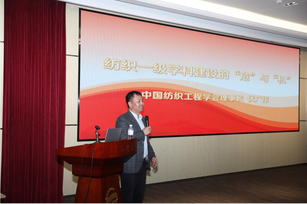 大会期间,大会嘉宾中国纺织工程学会理事长伏广伟和东华大学研究员王黎明分别做了《纺织一级学科建设的“危”与“机”》和《新时代纺织科技创新与发展》的报告,探讨了新时代纺织的定位、发展趋势及重点方向,对高校推进产业深度发展进行了思考。