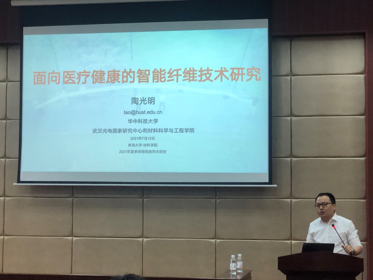新闻网讯 7月12日上午,华中科技大学陶光明教授应邀来校作题为《面向医疗健康的智能纤维技术研究》的学术报告。