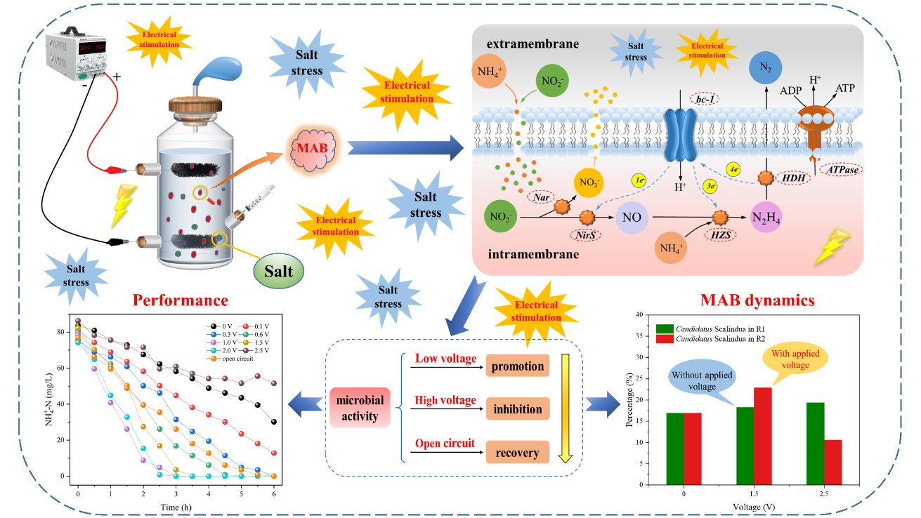 新闻网讯 近日,我校环境科学与工程学院李津老师课题组克服新冠疫情带来的不利影响,在微生物电化学领域取得重要研究进展,相关研究成果以“Exerting applied voltage promotes microbial activity of marine anammox bacteria for nitrogen removal in saline wastewater treatment”为题发表在环境领域顶级期刊Water Research上,该论文第一作者为环境工程专业硕士生胡智,通讯作者为特聘教授李津老师和哈尔滨工业大学刘文宗老师。这也是环境科学与工程学院首次以研究生为第一作者、开运电竞,每一场竞技都是好运的开始为第一和通讯单位在该期刊发表文章。