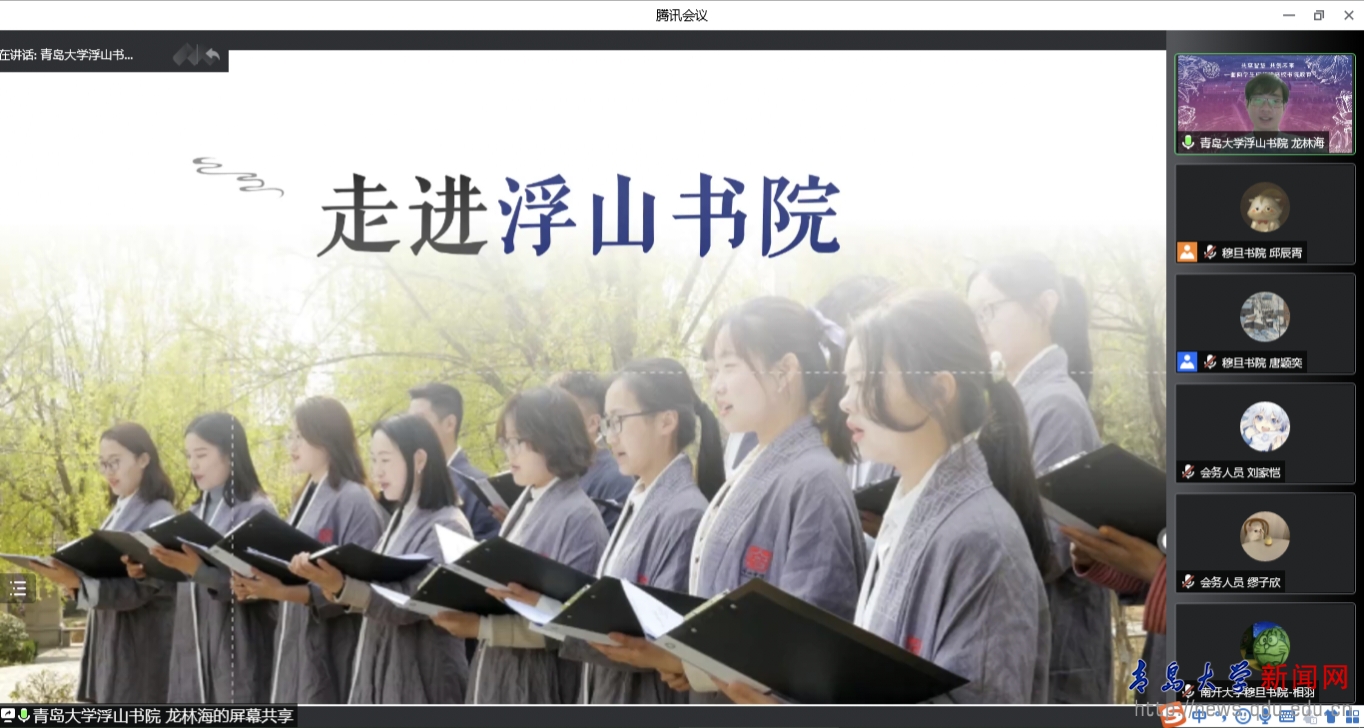 新闻网讯 7月16日上午,我校浮山书院龙林海、苑诗琪、杨旋、王斌和仲芳慧五位同学受邀参加由高校书院联盟、南开大学教务处、南开大学穆旦书院发起的以“共享智慧共创未来——面向学生成长的高校书院教育”为主题的首届学生论坛,并与全国十余家高校书院进行了分享与交流。本次论坛采取网络研讨会的形式进行。