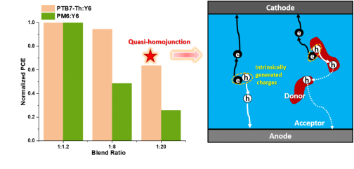 这项工作突破了经典的本体异质结有机太阳能电池结构,克服了本体异质结的部分缺点。在准同质结有机太阳能电池中,可以通过提高本征电荷的产生和减少电荷重组来实现高器件效率,而不仅仅是依赖于给受体界面上的激子解离。这种新的器件结构也有利于一些其他应用,如半透明有机太阳能电池和近红外光电探测器。