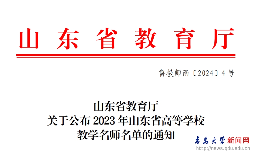 新闻网讯 近日,山东省教育厅公布了山东省2023年高等学校教学名师获评名单,全省共有200名教师被评为省级教学名师,其中本科院校120名。我校文学与新闻传播学院马光亭教授、师范学院马勇军教授、物理科学学院云茂金教授、计算机科学技术学院孙英华教授和外语学院綦甲福教授喜获此殊荣,入选数量并列省属高校第一名。截至目前,学校共获评省级教学名师27人,国家级教学名师1人。