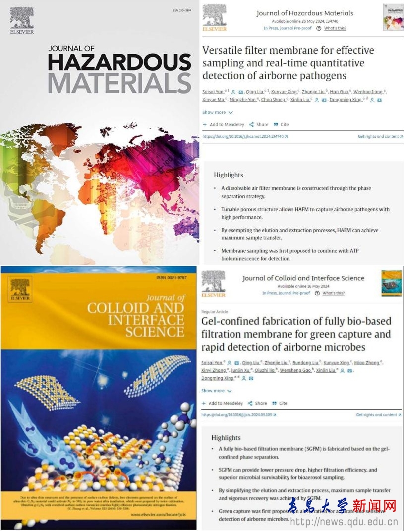 新闻网讯 面对严峻的血液制品微生物污染安全挑战,我校肿瘤精准医学研究院、医工研协同创新中心邢东明教授团队与青岛海尔生物医疗联手研发微生物快速采集及检测一体化技术,获得山东省重点研发计划立项支持。近日,两项关键研究取得重要进展,研究成果分别在国际权威学术期刊《Journal of Hazardous Materials》和《Journal of Colloid and Interface Science》发表。
