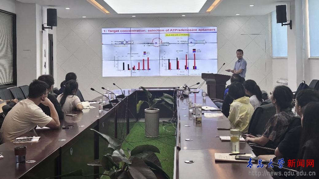 本次讲座为“活力生命论坛”第105讲,刘珏文教授在讲座中重点介绍了DNA与纳米金的界面作用、DNA适配体筛选表征及药物递送应用等。基于纳米金的DNA修饰这一基础科学问题,进行了深入探索研究,分享了在成果背后的研究思路。结合适配体筛选和表征,介绍了选题的经验技巧。刘教授还分享了其团队的最新研究成果,利用适配体靶向眼部进行药物递送。报告会后,刘教授与在场师生进行了互动交流,耐心解答有关纳米金的非巯基DNA修饰、适配体传感和治疗应用等问题,现场气氛活跃。