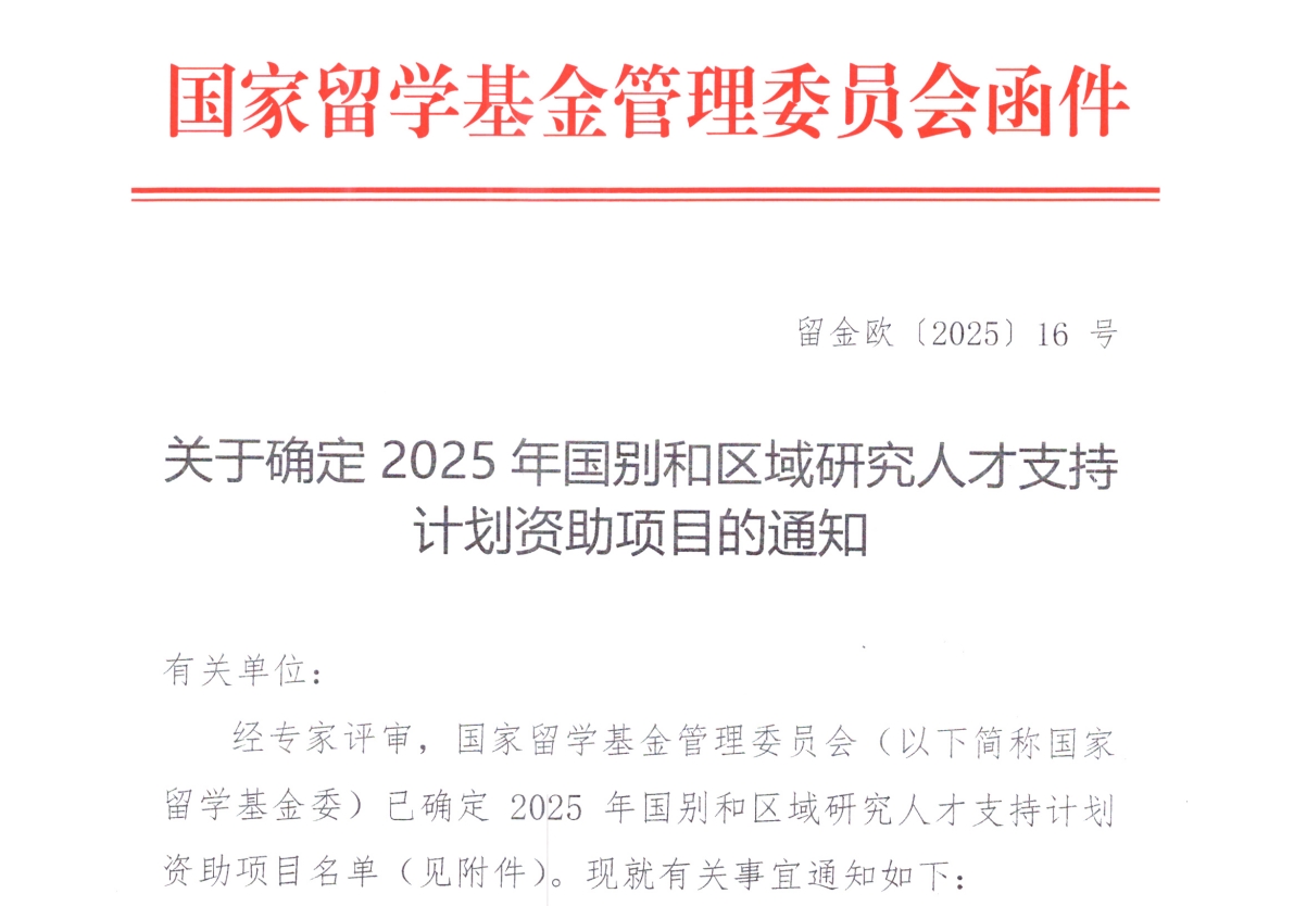 我校首次获批国家留学基金委“国别和区域研究人才支持计划”资助项目
