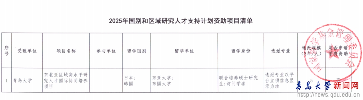 新闻网讯 近日,国家留学基金管理委员会(以下简称“国家留基委”)公布了2025年“国别区域研究人才支持计划”资助项目名单,由我校政治与公共管理学院牵头申报的“东北亚区域高水平研究人才国际协同培养项目”成功获批。这是学校首次获批此类项目,标志着我校区域国别研究人才培养工作取得新突破。
