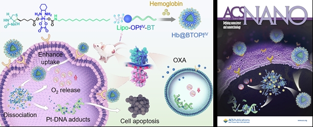 新闻网讯 近日,我校药学院孙勇教授团队在四价铂靶向递送和免疫增强研究方面取得最新研究进展,相关研究成果以“Biotin Receptor-Targeting PtIVOxygen Carrying Prodrug Amphiphile for Alleviating Tumor Hypoxia Induced Immune Chemotherapy Suppression”为题发表在ACS Nano (DOI:10.1021/acsnano.5c00691),并被编辑部遴选为封面文章。该文第一作者为药学院硕士研究生孙开创,共同作者有药学院教师孙勇、韩尚聪和魏登帅等,合作单位有西安交大、中国科学院。