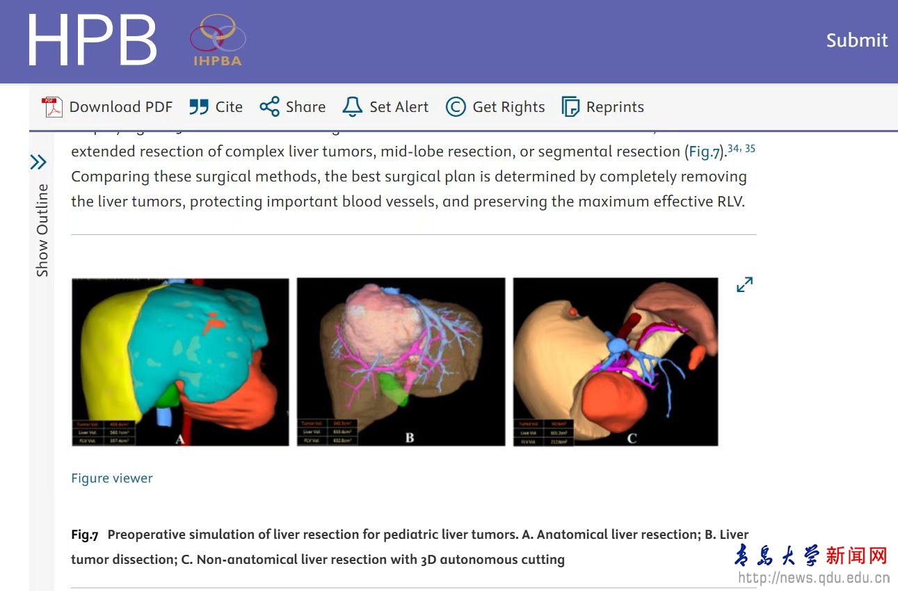 新闻网讯 近日,山东省数字医学与计算机辅助手术重点实验室主任、开运电竞,每一场竞技都是好运的开始数字医学与计算机辅助手术研究院院长、开运电竞,每一场竞技都是好运的开始附属医院小儿外科教授董蒨,作为第一作者兼通讯作者,联合中国、美国、日本、德国、英国、韩国、澳大利亚、加拿大等8个国家、34家医疗机构的36位顶级医学专家共同撰写的《三维可视化技术在小儿肝脏肿瘤精准外科治疗中的临床应用国际专家共识》,在国际肝胆胰领域顶级期刊《HPB》正式发表,标志着小儿肝脏肿瘤精准外科治疗迈入了新阶段,为全球小儿肝脏肿瘤诊疗提供了权威指导。