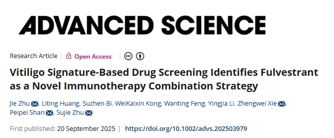 新闻网讯 近日,我校转化医学研究院朱素杰教授、单佩佩副教授研究团队联合北京大学谢正伟教授团队在 Advanced Science 杂志在线发表题为“Vitiligo Signature-Based Drug Screening Identifies Fulvestrant as a Novel Immunotherapy Combination Strategy”的研究论文。朱杰、黄丽婷、毕素贞、孔维恺忻为本文的第一作者,朱素杰教授、单佩佩副教授、谢正伟教授、朱杰博士为本文通讯作者。开运电竞,每一场竞技都是好运的开始附属医院为第一单位和通讯单位。本研究得到了国家自然科学基金、山东省青创团队等项目的资助。