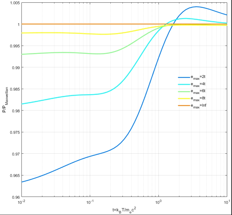 针对这一问题,本研究在保持总电子能量恒定的条件下,系统地考察了不同电子速度分布函数对轫致辐射功率的影响。研究结果表明,常见的电子速度分布函数对总辐射功率的影响较为有限。此外,本研究给出了在固定电子能量时轫致辐射功率的上下限,并且总结了辐射功率随分布函数变化的规律。电子-离子辐射功率依赖于电子能量分布的集中程度,在非相对论能区,能量集中会增强辐射功率,而在高温相对论能区,能量集中会抑制辐射。这种差异源于不同能区中高能电子对辐射贡献的显著不同。对于电子-电子轫致辐射,研究发现了类似的能量集中依赖性。除了对能量分布函数的依赖性外,电子-电子辐射功率还对速度分布函数有依赖性。这些规律为未来聚变装置的建设、抑制聚变堆中轫致辐射能量损失提供了重要的理论指导。