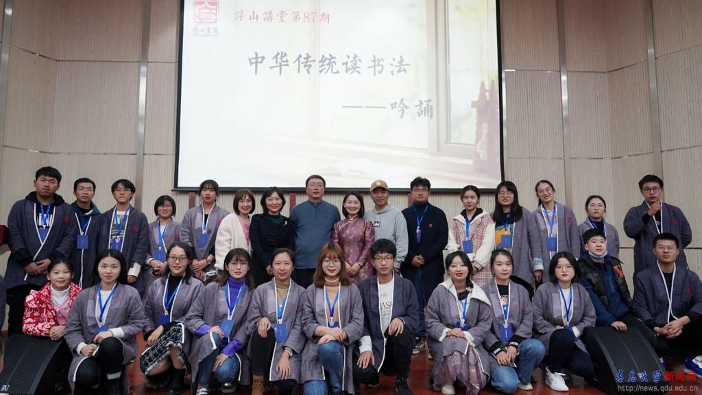 新闻网讯 12月26日,浮山讲堂第87期在浮山校区会议中心举行,著名吟诵家、国学教育专家、首都师范大学徐健顺副教授为现场120余名师生和60余名岛城市民及线上1800余名爱好吟诵的朋友作了题为“中华传统读书法——吟诵”的讲座,通过介绍吟诵的概念、历史、方法、学术价值和教育价值,让大家穿越时空,领略古诗文的声音原貌。