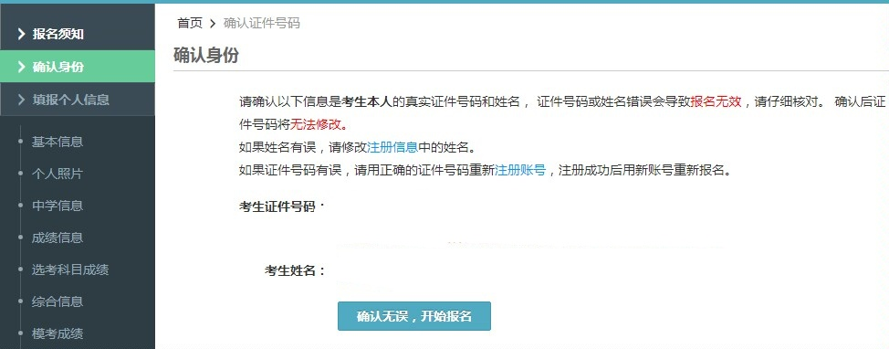 信息填写完毕后点击“我已阅读并同意服务条款”,继续点击“确认无误,开始报名”,可以开始填报志愿。