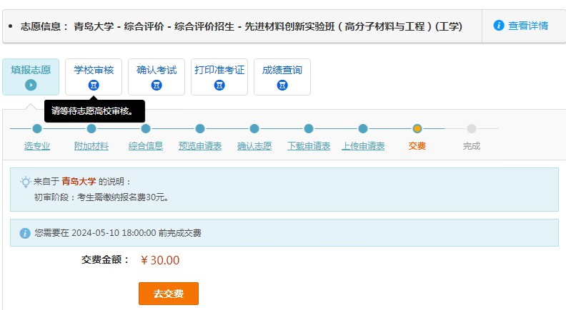 (三)请考生务必于2024年5月10日下午17:00前完成上述报名流程。凡是材料不全、未按要求上传、系统未最终提交的视为放弃报名资格。