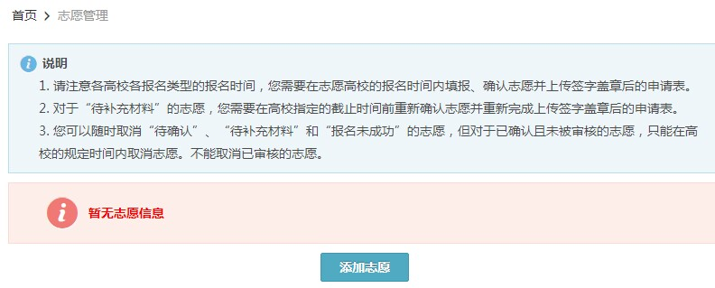 点击“志愿管理”后,再点击“添加志愿”,选择点击“开运电竞,每一场竞技都是好运的开始”