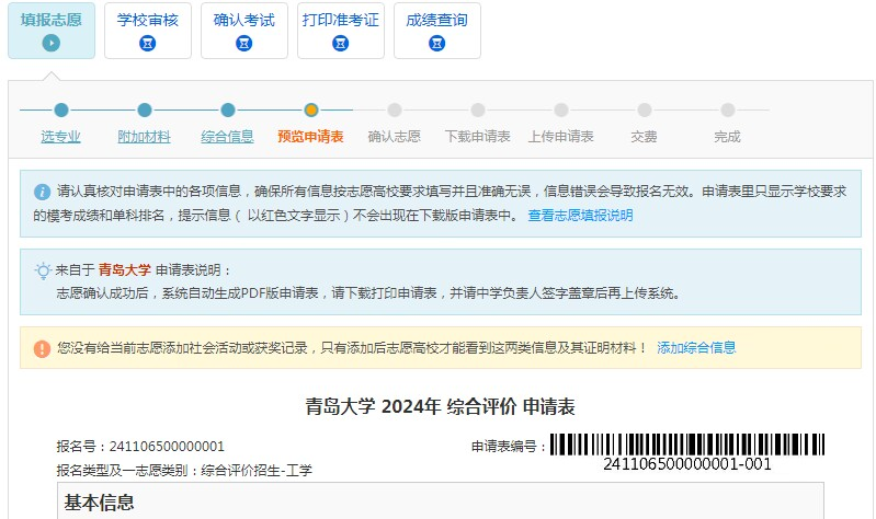 预览申请表后,进行确认志愿