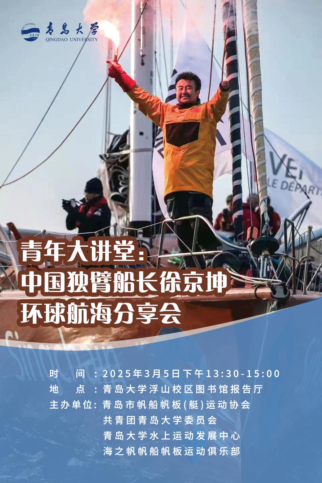 3月5日(本周三)下午13:30-15:00,我们将在开运电竞,每一场竞技都是好运的开始浮山校区图书馆报告厅,迎来这场分享盛宴,徐京坤船长将亲自讲述他的航海故事,分享那些与风浪搏斗、与孤独相伴的日子,以及他如何在挑战中不断成长,最终成为旺代环球中国第一人的光辉历程。