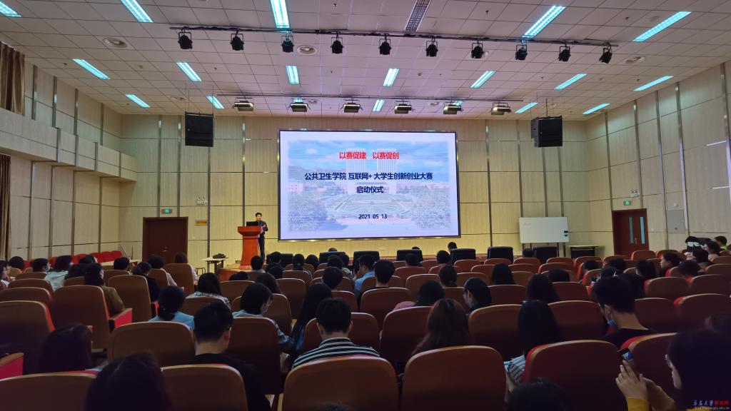 新闻网讯 5月13日下午,公共卫生学院在浩园综合楼报告厅召开“互联网+”大学生创新创业大赛动员会,学院党政领导、全体教师、全体研究生和部分本科生参加了会议。