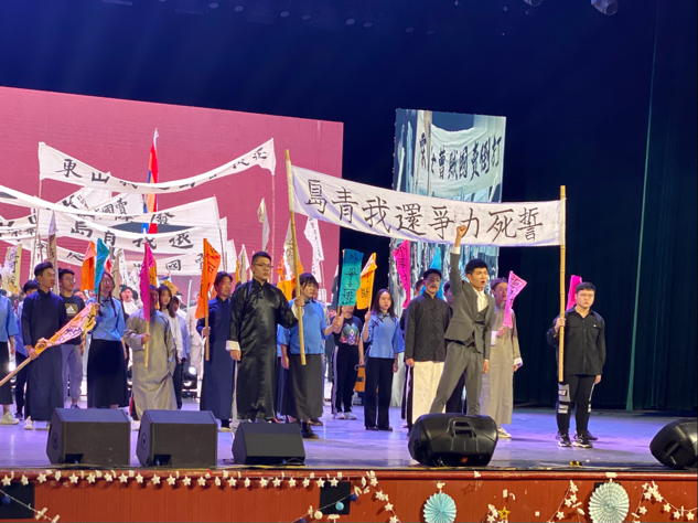 歌会中,各类舞蹈精彩纷呈:舞蹈《青莲》、《Ponzona》演绎初夏温柔,燃起青春焰火,带给现场观众独一无二的视觉盛宴;器乐表演《新编十面埋伏》、《若能绽放光芒》等独出心裁,宛若林籁泉韵,令人心旷神怡;歌曲《在水一方》、《等你下课》、《追梦赤子心》等将青春的点点滴滴化作音符,用梦想编织旋律,汇成骊歌,余音绕梁;舞台剧《红色的孕育》诉说着革命先辈们的无悔人生,演绎出艰苦年代的大义凛然,彰显出师院学子对党史学习教育的创新与传承。
