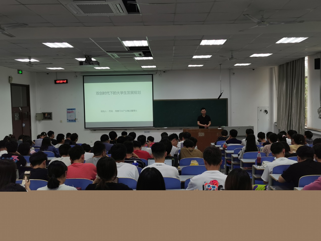 新闻网讯 7月15日下午,电子信息学院通信工程专业2007级优秀校友——海宴文化产业集团董事长范旭受邀回校做创新创业报告。