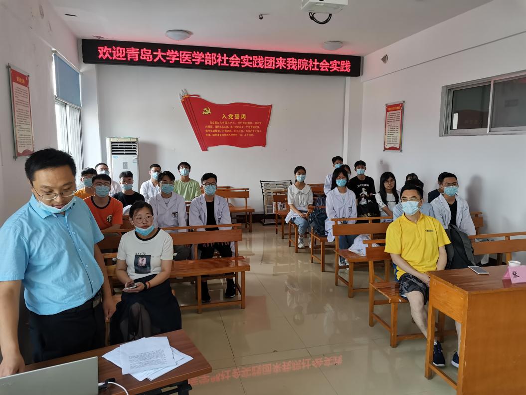 19日上午,实践活动启动仪式在莒南县人民医院会议室举行,莒南县人民医院科教科主任卢晓斌向同学们介绍了医院的历史人文、发展现状、未来愿景,并对实践任务做了具体安排;院团委负责人王成琳、临床技能培训中心许妍妍分别介绍了医院的实习实训管理制度、医德行为规范和安全管理条例等规章要求。医学部学工办副主任张明对医院给予实践团队的支持帮助表示衷心感谢,要求全体队员严格遵守医院的规章制度,在暑期实践和志愿服务期间多听、多看、多思考,为今后专业学习和见实习提供更好的理念引领和实践指导;牢固树立安全意识,确保实践活动安全有序开展。