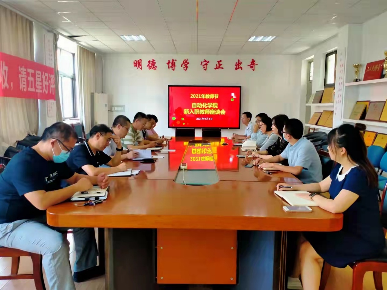 新闻网讯 9月8日下午,自动化学院在行思楼316会议室召开新入职教师座谈会。学院党委书记张新柏主持。2021年度校优秀教师、校服务育人先进个人代表、2021年度新入职教师参加座谈会。