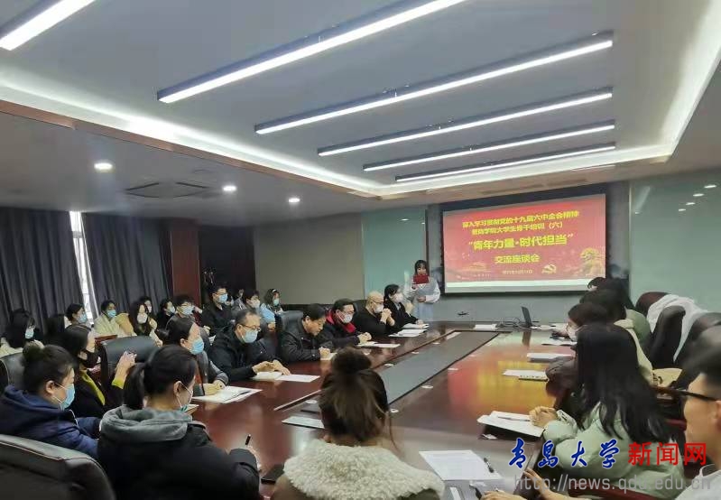 新闻网讯 12月21日下午,商学院以“青年力量·时代担当”为主题,开展深入学习贯彻党的十九届六中全会精神的交流座谈会。商学院党委书记王功勇,学工办主任李鹏,团委书记姜雪峰,各学生党支部书记和辅导员老师应邀出席。