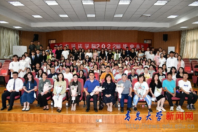 毕业生代表刘汉青、徐家祥依次发言,表达对母校的感激和依依惜别之情;教师代表孙宁希望同学们牢记老师的殷殷嘱托,在今后的人生路上,保持一颗顺境仁爱,逆境开朗的心。随后,毕业生们为老师献上鲜花,毕业典礼在全体合唱《青大之歌》中圆满结束。