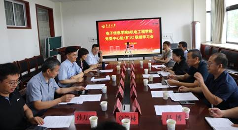新闻网讯 7月6日下午,电子信息学院、机电工程学院党委中心组(扩大)在诚思楼407会议室举行联组学习,校党委常委、副校长孔伟金线上巡听督学,电子信息学院党委书记张启春主持联组学习。