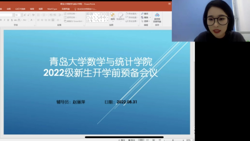 正当年华,共赴新程——2022级新生开学预备会议。8月31日,学院2022级本科生辅导员赵丽萍线上召开新生开学预备会议。会议中,赵丽萍向加入我院的全体新生表示热烈欢迎,随后就疫情防控状态下落实好新生暂缓报到政策及具体返校流程问题做出详细说明。
