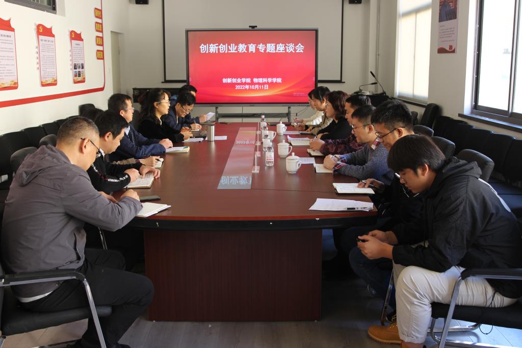 新闻网讯 为深入学习贯彻党的二十大精神,推进学院事业发展,结合学校第三次教育思想大讨论的工作安排,近日,物理科学学院邀请创新创业学院常务副院长王海荣一行四人来院交流研讨创新创业工作。学院党委书记郝伟等班子成员、专业负责人和部分教师参加会议。会议由院长滕冰主持。