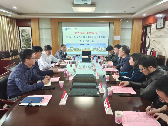 3月11日上午,与南京信息工程大学电子与信息工程学院院长张治中、党委副书记叶玉娣座谈交流。双方互相介绍了各自学院在学科建设、科学研究、人才培养、学生工作等方面情况,并围绕党建引领科学发展、高质量人才引育、专业建设和人才培养、学科竞赛组织等议题进行深入交流和探讨,达成了党建共建、专业建设互动等共识。会谈结束后,一行人参观了学院集成电路平台和校企共建实验室。