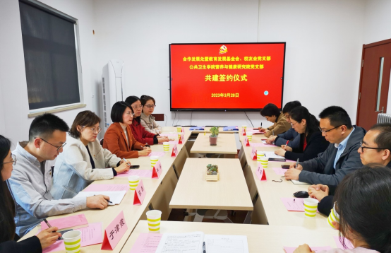 张燕向大家介绍了本支部情况,并以《发挥综合性大学优势 全面创新服务社会工作》为题,分享了高校服务社会的责任使命、工作进展情况,阐述了以提升能力、形成合力、全面发力、切实给力为重点,全面创新服务社会工作的思路和举措,并与公共卫生学院营养与健康研究院党支部书记陈磊共同签署党支部结对共建协议书。