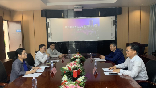 在深圳大学电子与信息工程学院,张启春一行与学院党委书记周浩江、执行院长黄磊及教师和辅导员代表座谈交流,双方围绕党建引领学院事业发展、电子信息专博申报、人才队伍建设和学生工作等方面进行了深入的交流探讨,就人才培养、学科指导、学术交流等方面达成合作意向。