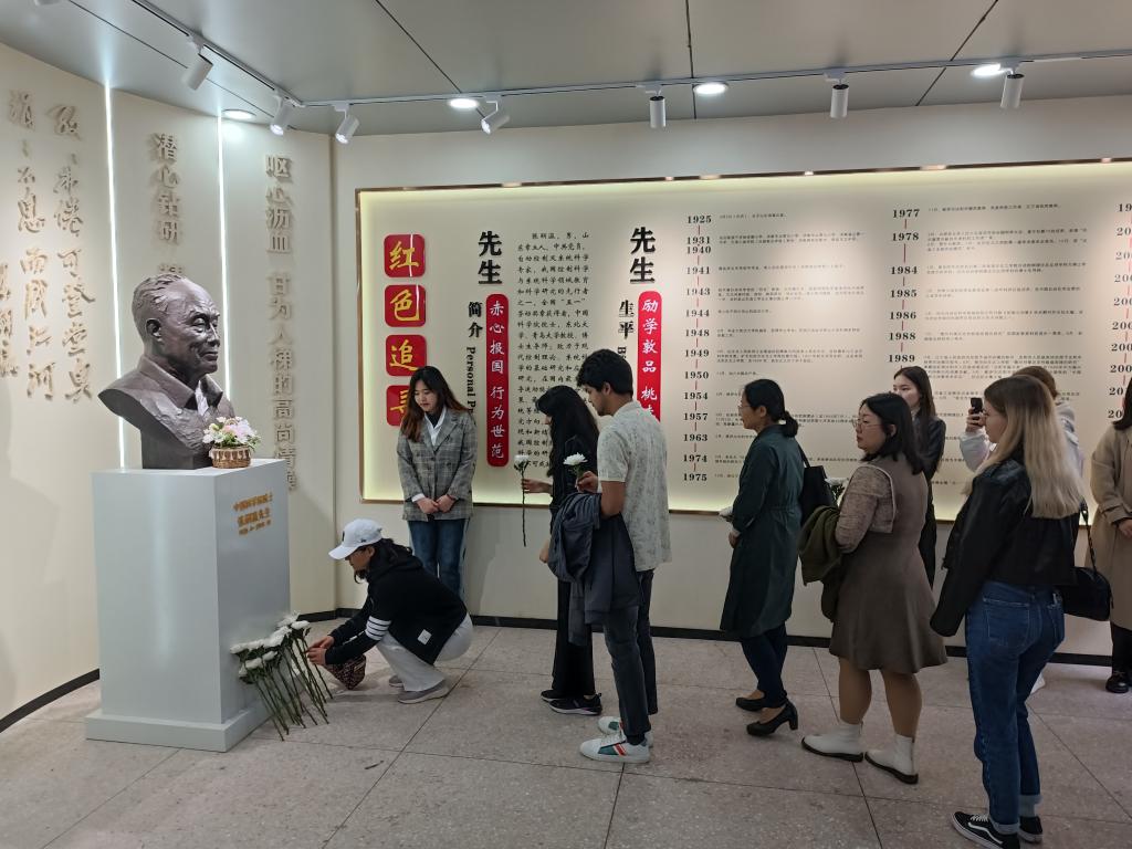 校史馆参观结束后,为学习张嗣瀛院士在爱国、治学、为师、为人方面的家国情怀和科学精神、卓越贡献与高尚情操,表达对张院士的深切怀念之情,国际教育学院师生及我校留学生代表来到自动化学院,开展了张嗣瀛院士精神学习交流活动,在嗣瀛星火宣讲团同学的带领下进行了张嗣瀛院士精神学习和座谈交流,继续传承他精诚报国、以身许国的家国情怀和专心、专业、专注的科学精神。学习座谈会结束后,全体参会人员和留学生代表向院士雕像敬献鲜花,集体诵读致敬张嗣瀛院士的诗歌。