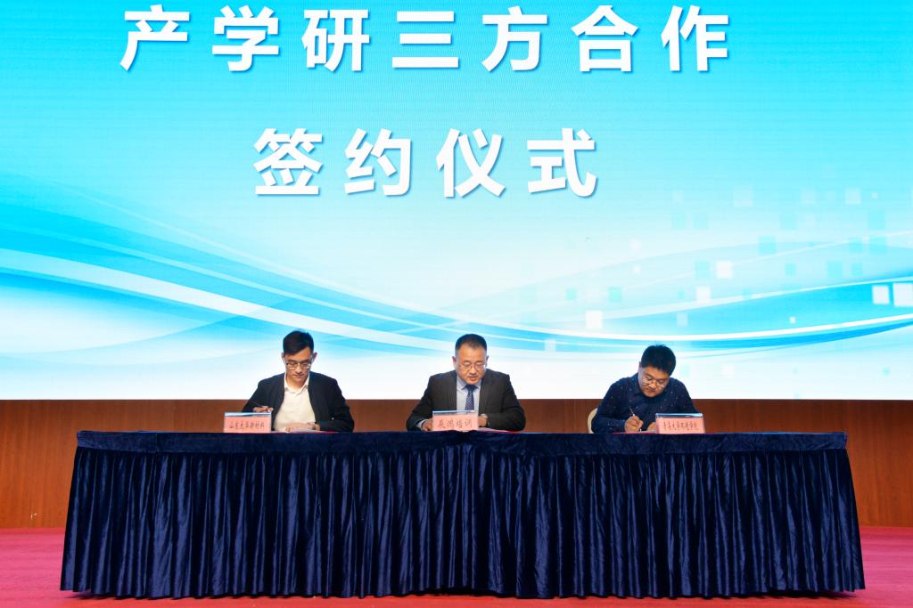 佘希林向出席本次仪式的安丘市委市政府各级领导、企业家代表表示衷心感谢。他介绍了学校近年来的发展概况和我院的总体情况,重点对学院的科学研究和科研成果转化工作进行了介绍。希望通过“政、校、企”三方聚力,有效推动产学研基地的建设和发展,共同打造“校地/校企合作+科技赋能”的安丘样板。