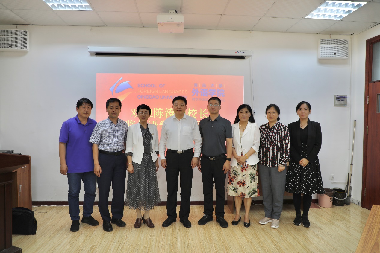 在认真听取了汇报之后,陈涛充分肯定了外语学院近年来取得的成绩,并对学院下一步的发展提出了指导性意见。陈涛表示,学院要继续强化党建引领,充分发挥党支部的战斗堡垒作用和党员的先锋模范作用;高质量完成学生第四党支部的全国第三批党建样板支部验收工作,并以此带动其他支部工作;团结带领广大教师认真贯彻落实校党委的指示精神,“打通基层党建最后一公里”。在学科建设方面,陈涛说,外语学院要以申报翻译专业学位博士点为契机,整合优势力量,要有国际视野和大发展思路与格局,走特色化、错位发展的道路。