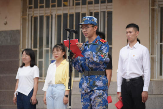 会上,21级学生代表王丙乾为全体2022级本科生作军训感悟分享;22级新生代表杨培杰向学院进行表态、崔鹏向全体2022级本科生提出军训要求;学院嗣瀛星火宣讲团成员贾生冉,钱尚乐,王雪艳,赵真为在场师生带来诗朗诵《军训,内心的长征》。