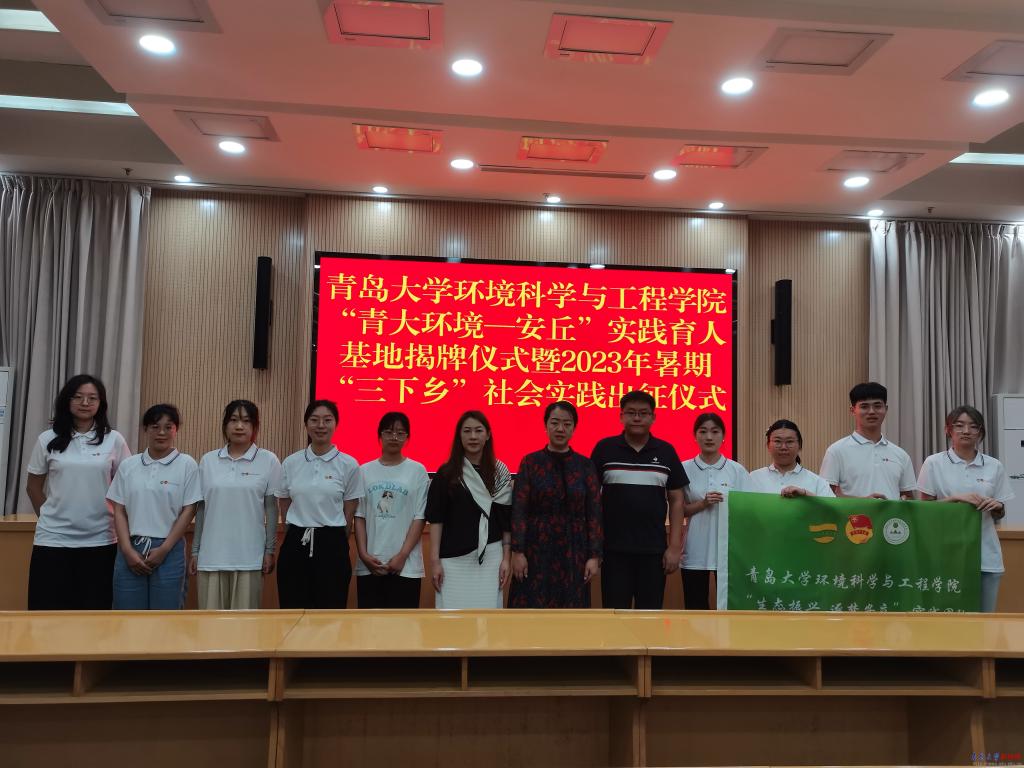 新闻网讯 为进一步深化校地合作,充分发挥高校服务社会、服务地方职能,巩固和拓展我院实践育人成效,不断引导新时代大学生提升实践能力,近日,环境科学与工程学院党政领导一行7人以及学院“生态振兴,筑梦安丘”社会实践团队共赴安丘举行“青大环境-安丘”实践育人基地揭牌仪式暨2023年暑期“三下乡”社会实践出征仪式。