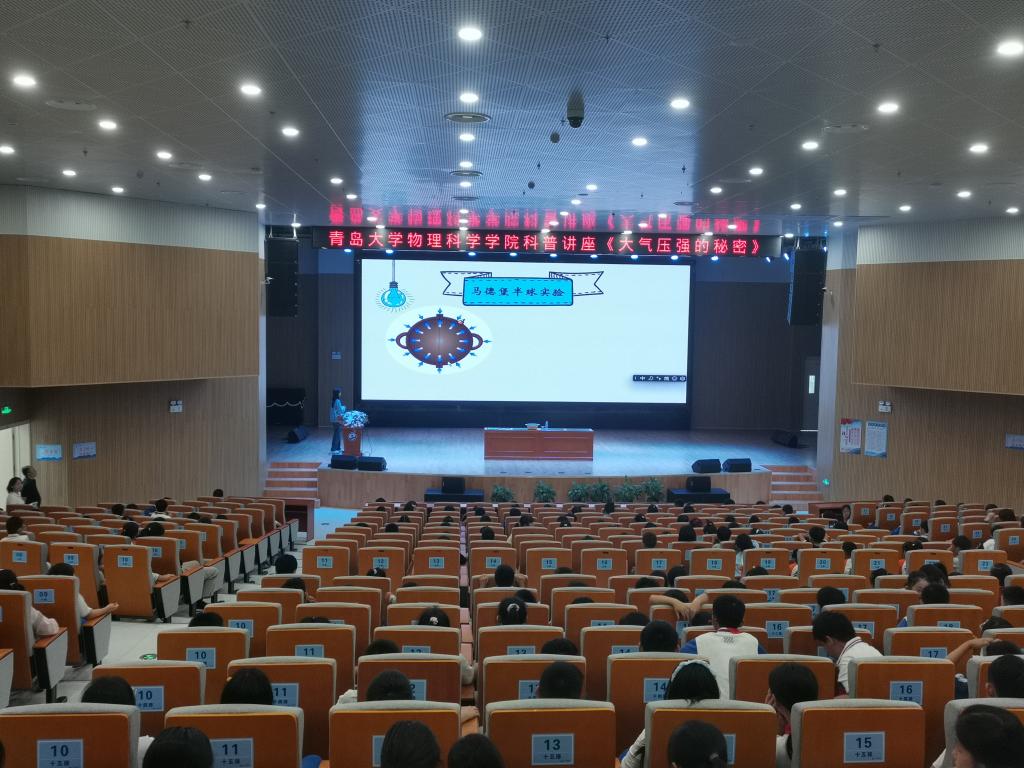 讲座围绕什么是大气压强、大气压强的方向、大小等性质以及大气压强的应用为主线,通过科学、严谨、趣味的漫画视频和现场动手实验,为近600位师生带来了一堂生动有趣、印象深刻的自然科学课。