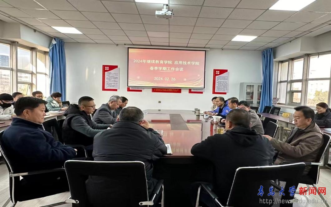 新闻网讯 2月26日,应用技术学院、继续教育学院在金家岭校区行正楼310会议室召开2024年春季学期工作会议,会议采取部门汇报、领导点评方式。各部门负责人就部门2023年工作总结和2024年工作计划做了汇报,分管领导分别进行点评。学院院长耿宝福报告了全院总体工作,学院党委书记宋佐东参加会议并讲话。