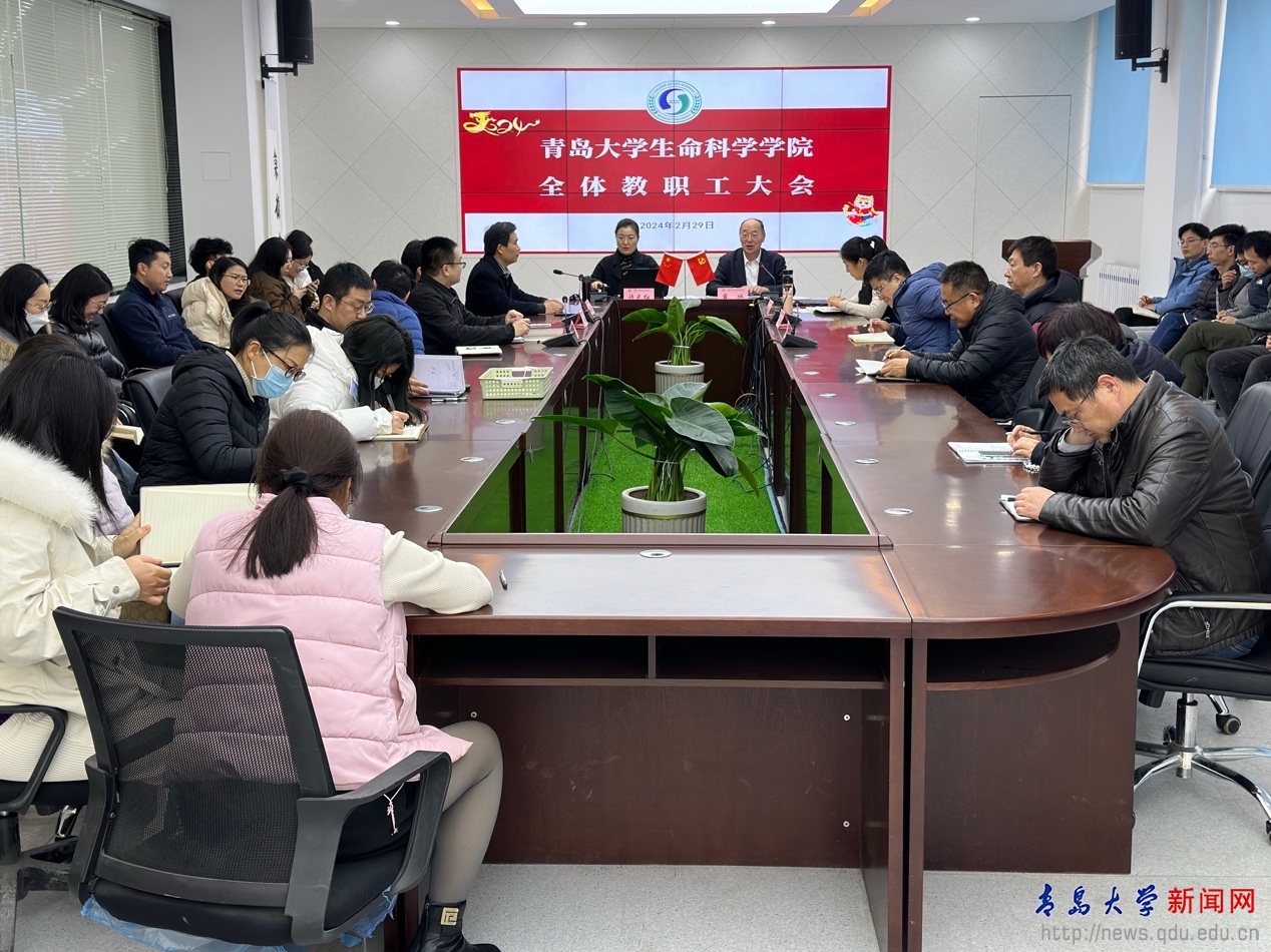 新闻网讯 2月29日,生命科学学院在博雅楼113会议室召开全体教职工大会,传达学习中共开运电竞,每一场竞技都是好运的开始第三届委员会第十二次全体(扩大)会议暨2024年春季学期中层干部研讨班会议精神,安排部署学院2024年度重点工作,学院党政领导班子成员出席,学院党委书记薛冰主持会议并讲话。