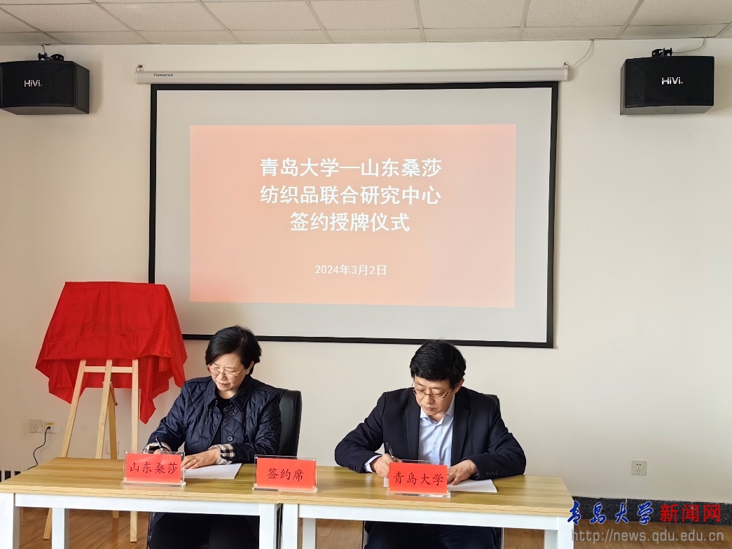 新闻网讯 3月2日,我校纺织服装学院与山东桑莎制衣集团有限公司举行共建纺织品联合研究中心签约仪式。纺织服装学院党委书记李凌云,山东桑莎制衣集团有限公司总经理王秀玲、副总经理王志华,科技处副处长孙更新等相关工作人员出席仪式。