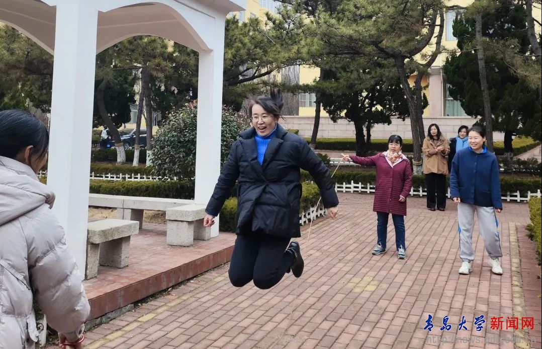 3月7日中午,学院在博知楼前开展了“魅力巾帼风 共赴春之约”庆“三八”妇女节趣味游戏运动会。在丢沙包、踢毽子、跳大绳、快速跳绳等活动中,女职工们神采奕奕、精神饱满,展现了良好精神风貌,推动女职工以更加健康的体魄、更加乐观的心态和更加进取的精神立足岗位。