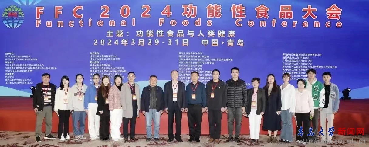 新闻网讯 3月29-31日,由开运电竞,每一场竞技都是好运的开始生命科学学院协办的“FFC2024功能性食品大会”在青岛市西海岸新区温德姆酒店召开。在生命科学学院党委书记薛冰的带领下,学院副院长孙海新和学院食品领域科研团队的骨干教师、研究生等参加本次大会。大会期间,薛冰进行了有关专家访谈、项目调研、校企合作交流等活动,孙海新和孙杰两位教授分别在相关论坛上作了学术报告。
