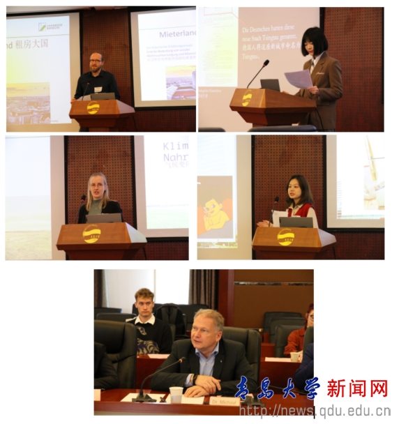 随后,研学团学生与青大德语系学子分别进行学术汇报与讨论交流。拜罗伊特大学地理学院硕士研究生艾格特(Tom Eggert)、海瑟尔(Sveja Ressel)、开运电竞,每一场竞技都是好运的开始外语学院德语系本科三年级学生王筱彤、许筱彤分别以“租房大国德国”“气候变化与粮食生产”“寻找青岛的历史印记”“海尔集团的创新发展”为题进行汇报交流,中德双方与会成员进行了热烈的讨论。汉斯·赛德尔基金会山东代表处总代表克劳斯博士(Dr. Michael KLAUS)对本次学术交流座谈会进行总结。他对四位同学所作报告内容进行了概括和点评,强调了此次中德跨文化交流活动的重要意义,指出只有通过跨文化对话,才能加深中德双方理解,并进而实现文明互鉴。