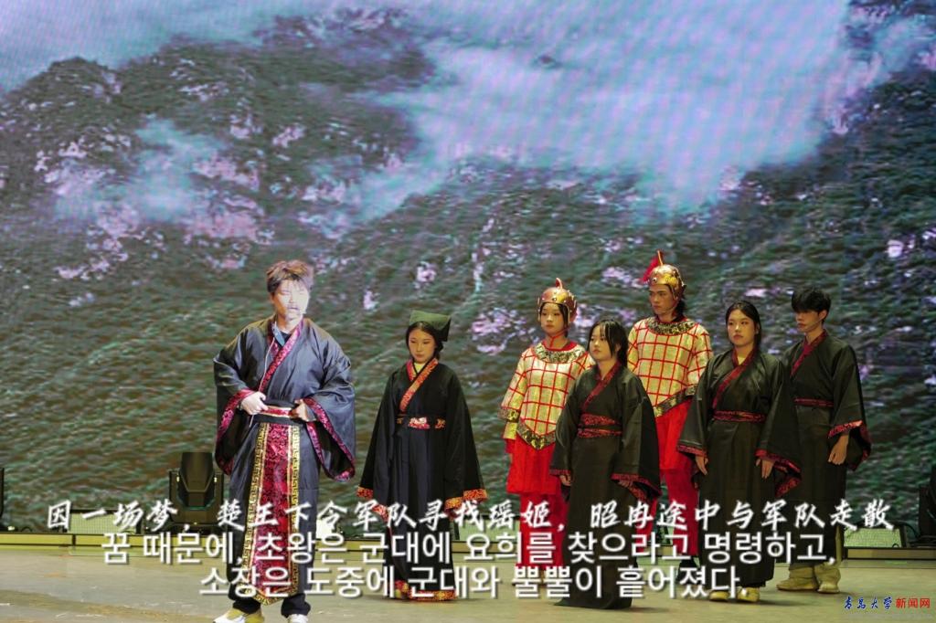 朝鲜语系的《山鬼》则将屈原诗歌中神秘而充满勇气的山神形象重新呈现在观众面前,引发了大家对传统文化的无限遐想。西语系的《撑花》以一把油纸伞为主线,串联起现代文明与传统文化的美好瞬间,让人感受到岁月流转中的不变韵味。