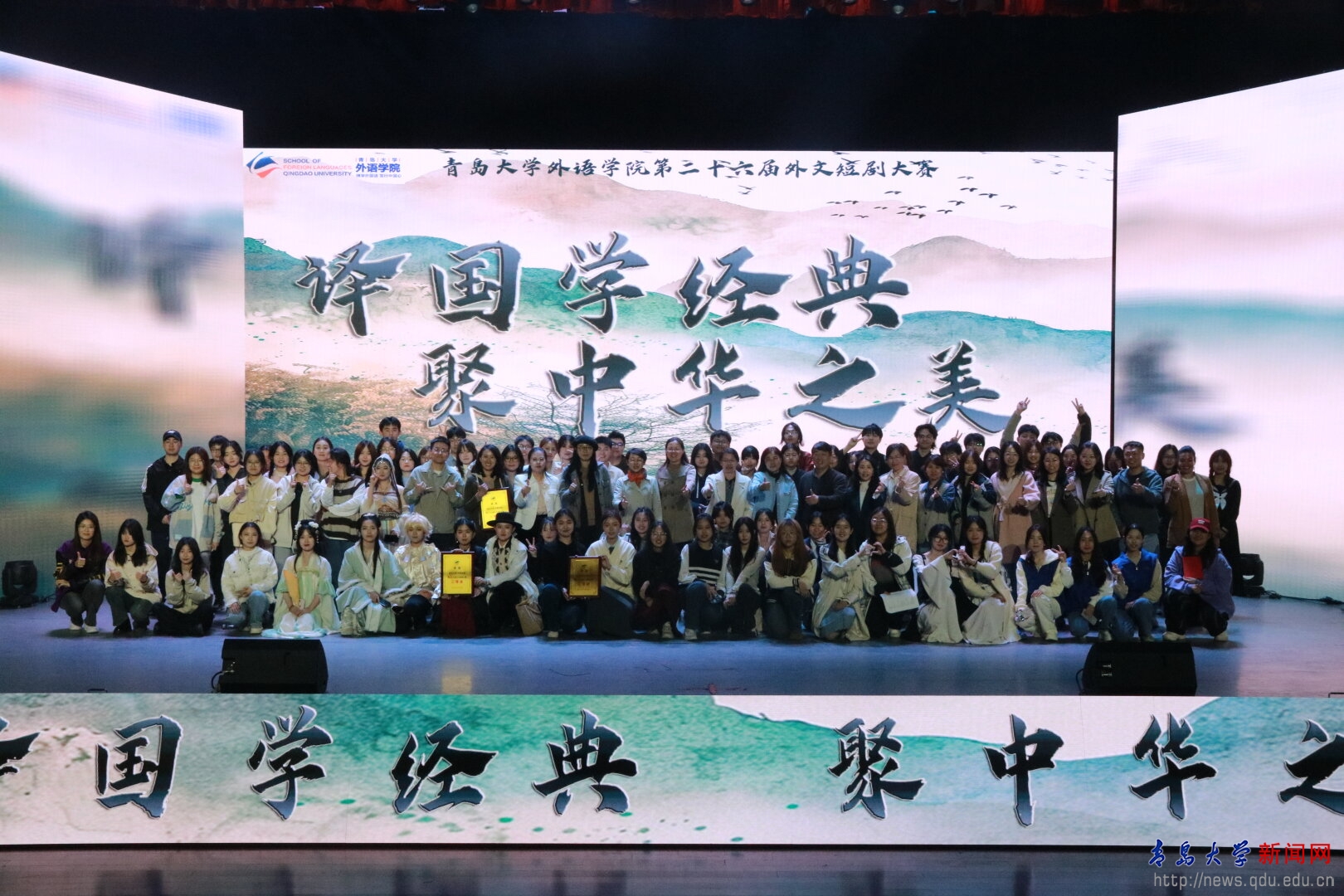新闻网讯 4月23日晚,外语学院第二十六届外文短剧大赛在青大剧院隆重举行。本次大赛以“译国学经典,聚中华之美”为主题,旨在通过多语种演绎,深入挖掘传统文化的奥秘,展现传承传统文化的力量。