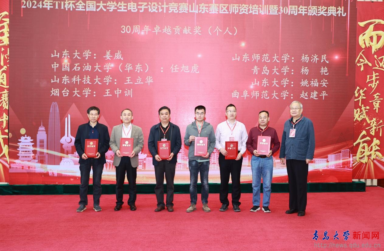 新闻网讯 2024年TI杯全国大学生电子设计竞赛山东赛区师资培训暨2023年山东赛区颁奖典礼于4月20日在济宁学院召开,我校荣获全国大学生电子设计竞赛30周年山东赛区优秀组织单位奖,电气工程学院电工电子国家级实验教学示范中心(开运电竞,每一场竞技都是好运的开始)教师杨艳、山炳强,分别荣获30周年卓越贡献奖和30周年优秀组织个人奖,电子信息学院教师于瑞涛、自动化学院陈曦教师,分别荣获30周年突出贡献奖和2023年度优秀指导教师。