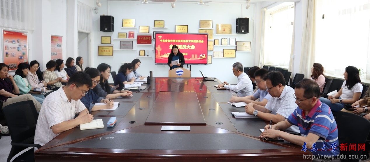 新闻网讯 近日,公共外语教育学院党委在睿思楼202会议室召开全体党员大会,院党委书记刘海荣向全体党员教工宣讲我校第四次党代会精神。